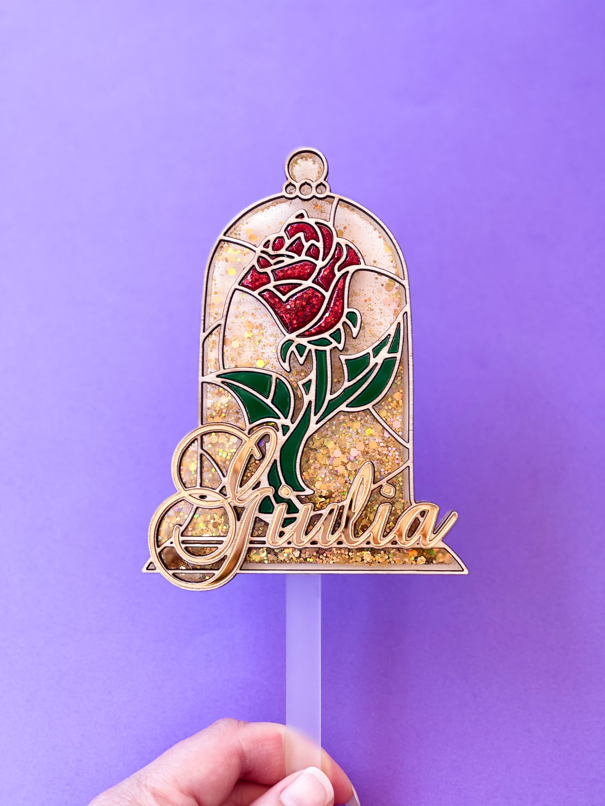 En vous et acrylique, il est orné de paillettes fixes et mobiles, il aura un effet wow sur tous vos gâteaux!